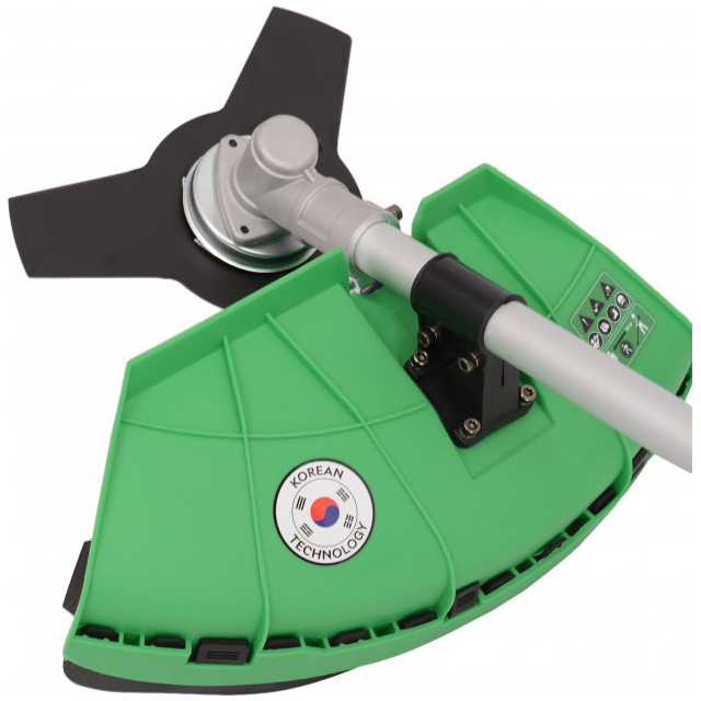 Для безпечної роботи передбачений спеціальний захисний кожух, виготовлений з ударостійкого пластику, який надійно закриває різальну частину та запобігає викиданню зрізаних стебел у бік користувача.